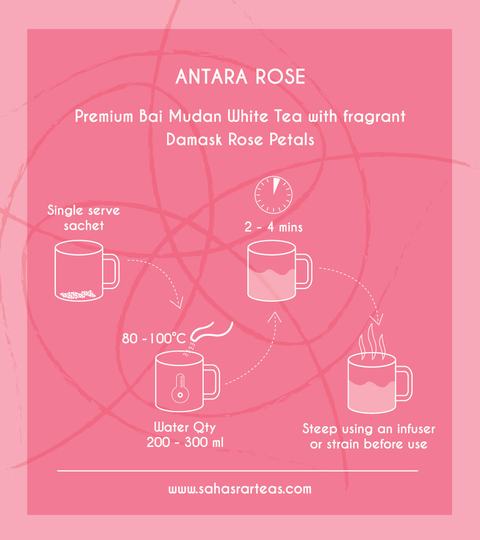 The premium white tea blended with damask rose petals to provide a soothing and aromatic experience to the palate.
